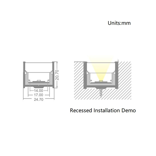 ▪ Recessed installation by aluminum mounting profile.